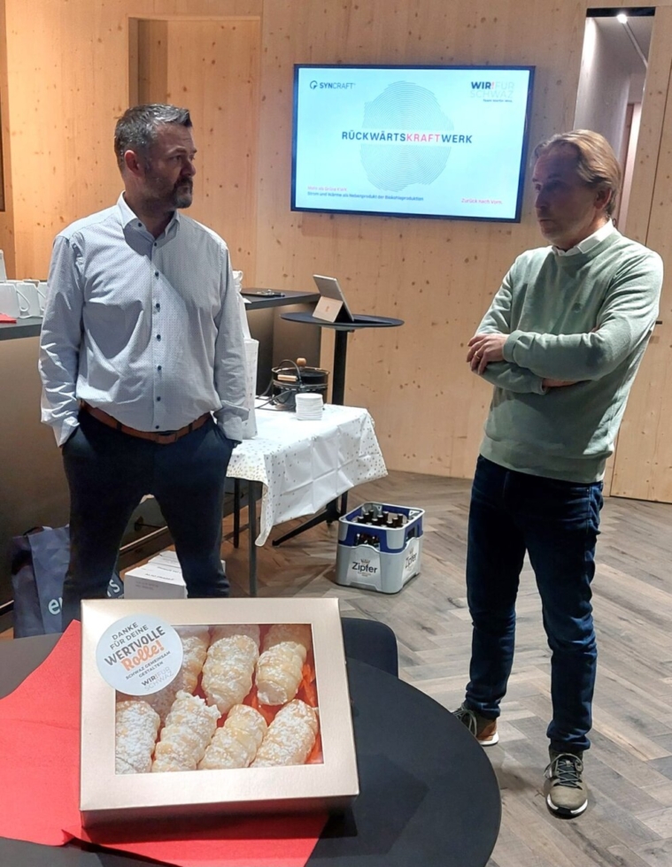 Unsere Initiative WIR! im Dialog führte uns diesmal zur Firma Syncraft (www.syncraft.at). Nach einer beeindruckenden Führung durch das Unternehmen konnten wir mit GF Marcel Huber aktuelle Energiethemen besprechen und das Projekt Fernwärme in der Silberstadt erörtern.
